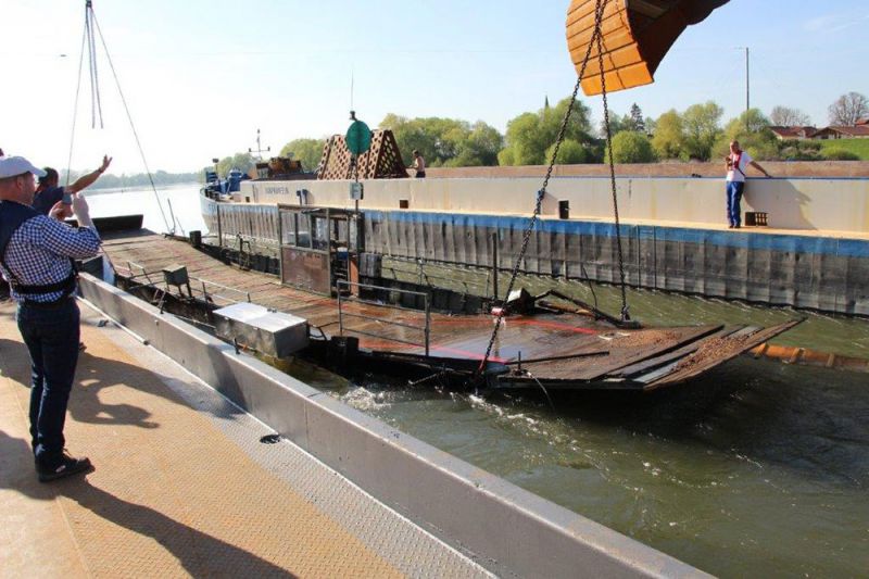 Die Bergungsoperation startete um 9 Uhr morgens nach einer detaillierten Besprechung vor Ort. Aufgrund der starken Strömung musste zunächst eine Schwallschutzwand vor der Fähre installiert werden, um die Arbeit des Berufstauchers der Firma Domarin zu ermöglichen. Dieser Taucher spielte eine entscheidende Rolle, indem er zunächst die Fähre sicherte, um ein Abtreiben zu verhindern. Die Sicherung der Masten, an denen das Fährseil befestigt war, hatte höchste Priorität.