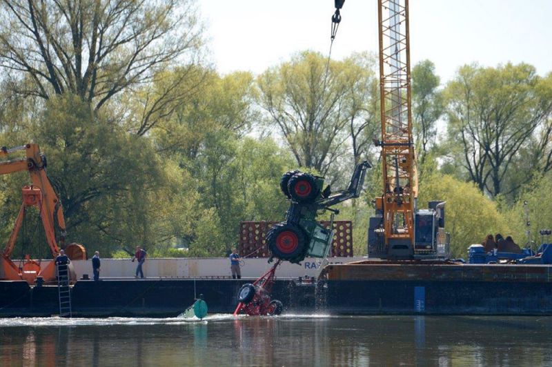 Anschließend wurde der Anhänger, der noch mit einem Traktor verbunden war, fest auf der Fähre gesichert. Obwohl eine separate Bergung geplant war, gelang es aufgrund der starken Strömung nicht, den Anhänger vom Traktor zu trennen. Der Kran hob schließlich gegen 12:25 Uhr den Traktor mit dem Anhänger aus dem Wasser und legte sie auf dem Bergungsschiff ab.