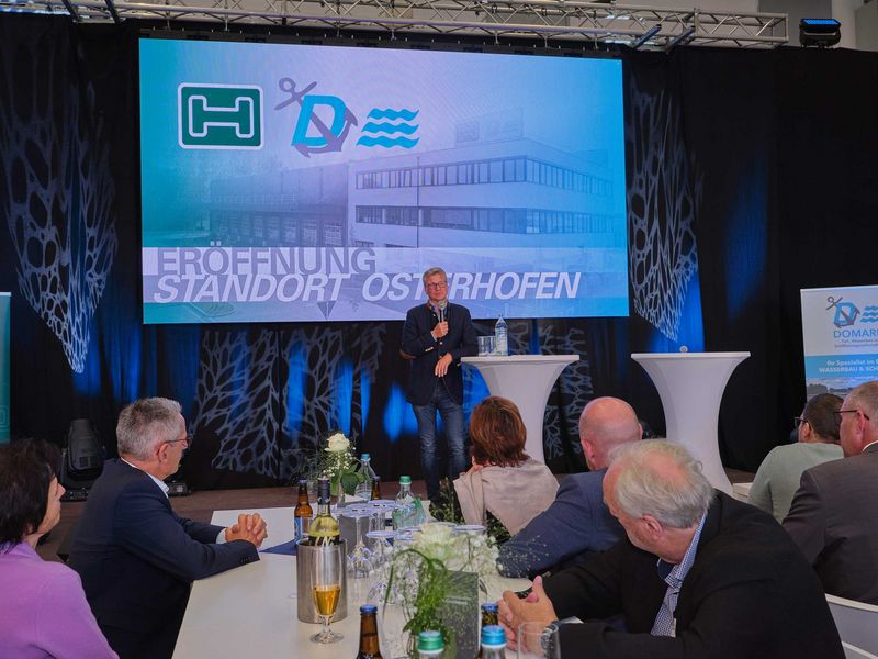 Die Bereichsleiter der Hagn Umwelttechnik und der Domarin Tief-, Wasserbau und Schifffahrtsgesellschaft Sandro Schieck und Jörg Hesselink sind sich einig: Das neue topmoderne Firmengelände sei eine Investition in die Zukunft der beiden Unternehmen und trage zur besseren Zusammenarbeit als auch zur Mitarbeitergewinnung bei. „Sowohl das Büro als auch die Werkstatt sind mit dem neuesten Stand der Technik ausgestattet“, berichtet Schick und ergänzt: „Der Neubau ist für unsere bestehenden Mitarbeiter eine Sicherheit, dass wir in unsere Zukunft investieren und bietet gleichzeitig einen attraktiven Arbeitsplatz.“