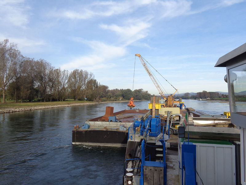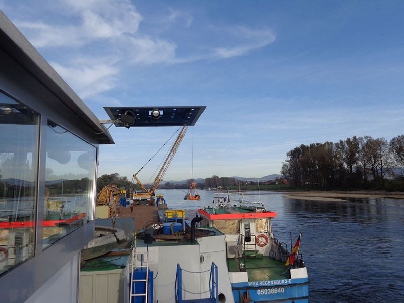 Nach der Havarie des Binnenschiffes rückte ein Baggerschiff von DOMARIN an, um die bei der Havarie entstandenen Kiesverwerfungen auf dem Grund der Donau wieder zu beseitigen.