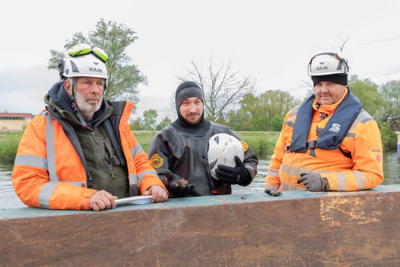 Taucher untersuchen Objekte bis in 4 Metern Tiefe unter Gewässersohle