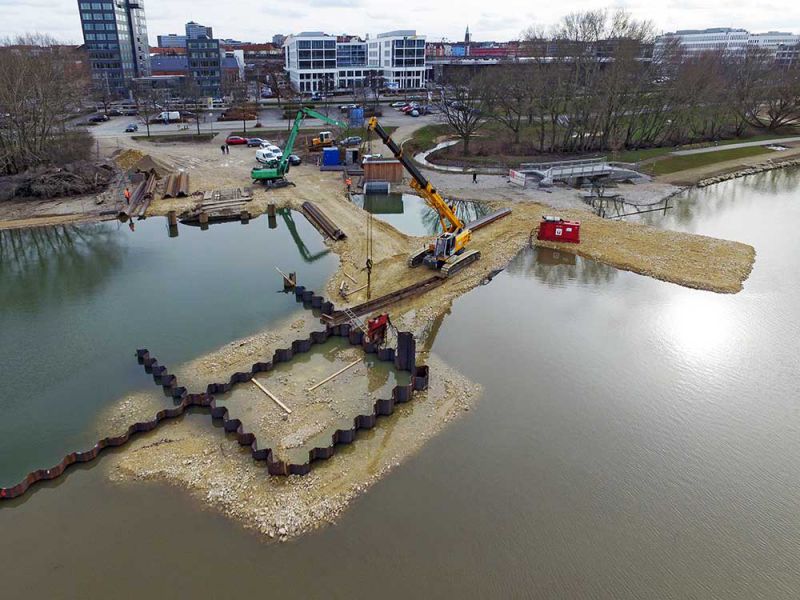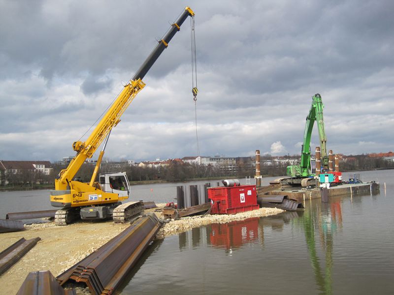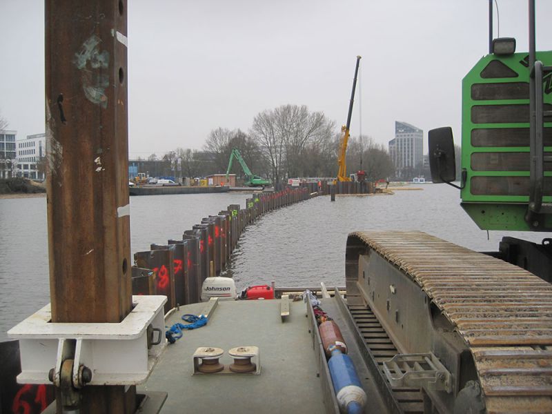 - Rammung einer 350 m langen Spundwand